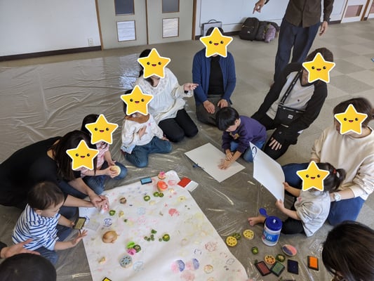 次は、前回同様「ポポーのひろば」さんによる手遊びや絵本の読み聞かせ、野菜スタンプのワークショップです!