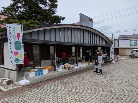 まずはプレオープンとして、五日町公園にて産直市を行いました。