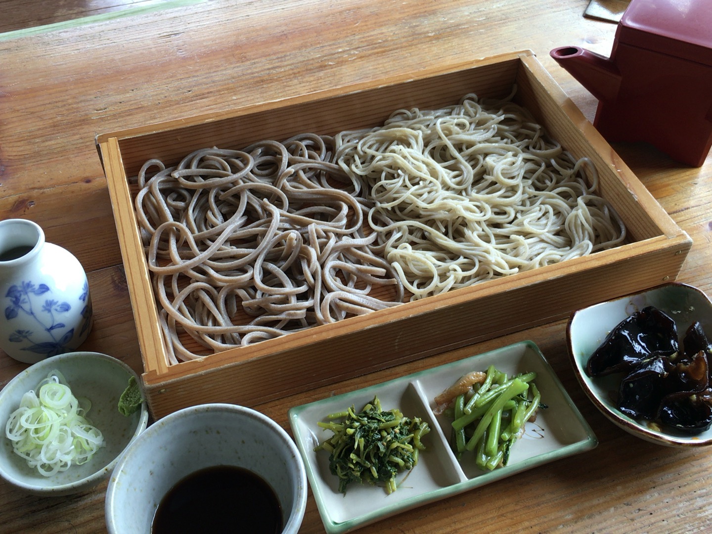 自家栽培の玄蕎麦を石臼で挽き、葉山の湧水で打つ手打ちそば。